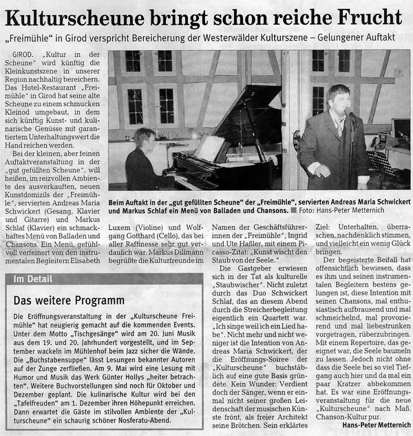 Es war ein wunderschöner Abend in der Kulturscheune der Freimühle.