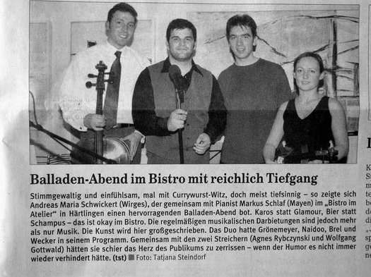 Agnieska Rybzcinska, ViolineWolfgang Gottwald, Violoncello