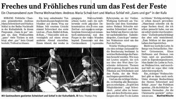 Weihnachten “Gans & gar” in der Kulturfabrik Koblenz
