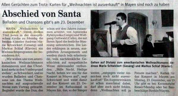 Die Konzerte mit Euch waren wunderschön ! Wir freuen uns schon darauf im nächsten Jahr an vielen Orten wieder auftreten zu dürfen.